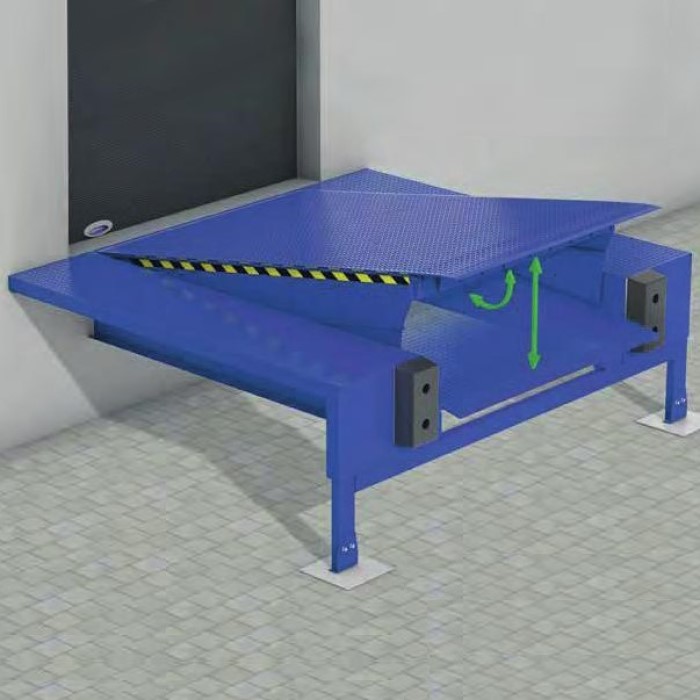 Hydrauliske frittstående eller innebygde lasteramper, med hengslet eller teleskopleppe.
