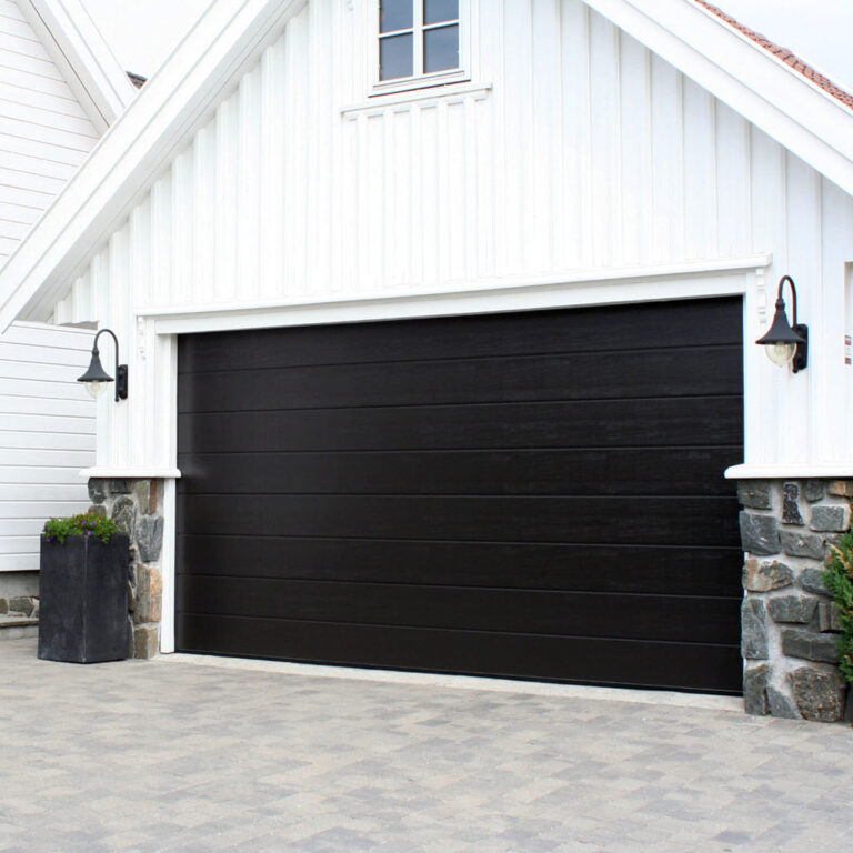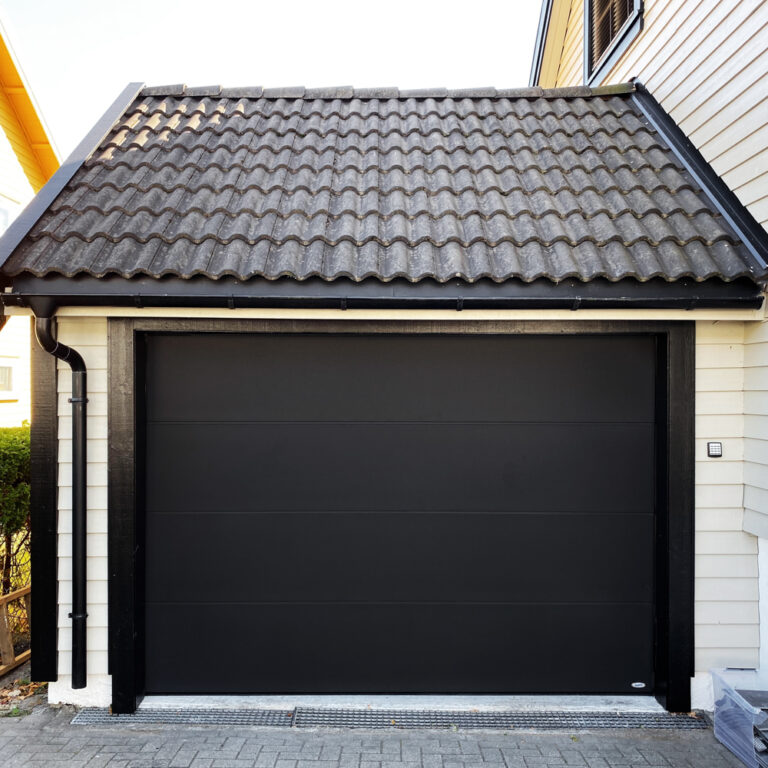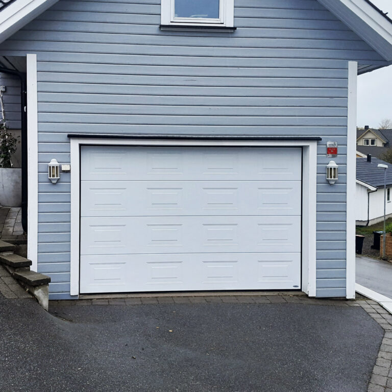 Disse garasjeportene kan leveres med mange forskjellige utførelser og farger, og bredde opp til 5,5 meter. Med en Novoferm ISO45 har du et stort utvalg muligheter for å få garasjeporten som passer til ditt hjem og dekker dine behov. Den leveres som standard med sidemontert motor, som gir deg ekstra god plass i taket. Du kan også få med kodetastatur, innvendig fastmontert fjernkontroll, appstyring og mer.
